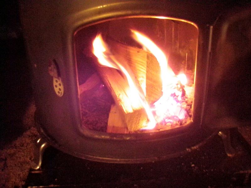 ゆうべは思いっきり薪をくべて寝たので